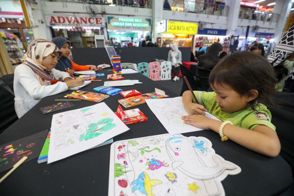 Kanak-kanak sedang mewarna lukisan ketika program Home Buyer di Kompleks PKNS, Shah Alam pada 26 Ogos 2023. Foto FIKRI YUSOF/SELANGORKINI