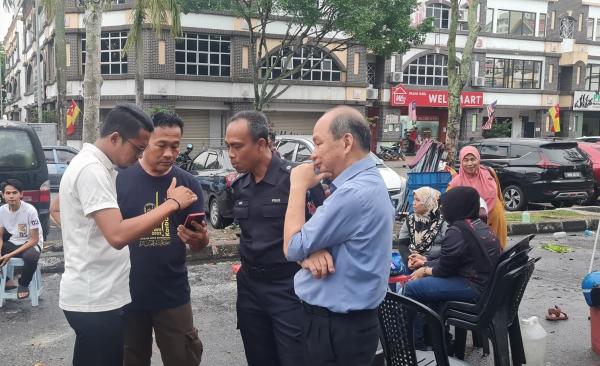 Semalam, Izuan turun ke lokasi kejadian bagi meninjau tahao kerosakan selain berjumpa dengan peniaga terlibat.