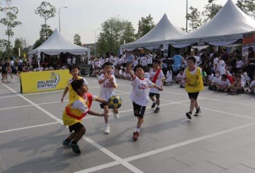 Kanak-kanak turut serta dalam pertandingan Korfball ketika majlis perasmian Fit Malaysia Selangor di Gamuda Cove Central Park, Kuala Langat pada 2 September 2023. Foto AHMAD ZAKKI JILAN/SELANGORKINI