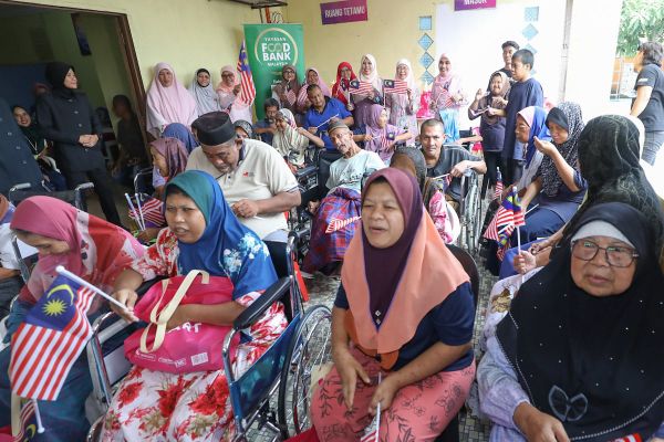 Pengerusi Pertubuhan Kebajikan Amal Silatuhrahim Isteri-Isteri Harapan (Kasih) Dato' Seri Dr. Wan Azizah Wan Ismail dan Isteri Dato' Menteri Besar Datin Seri Masdiana Muhamad bersama penghuni menyanyikan lagu Kebangsaan ketika program Kunjungan Merdeka Kasih 2023 di Pusat Jagaan Titian OKU Nur, Rawang pada 12 September 2023. Foto REMY ARIFIN/SELANGORKINI