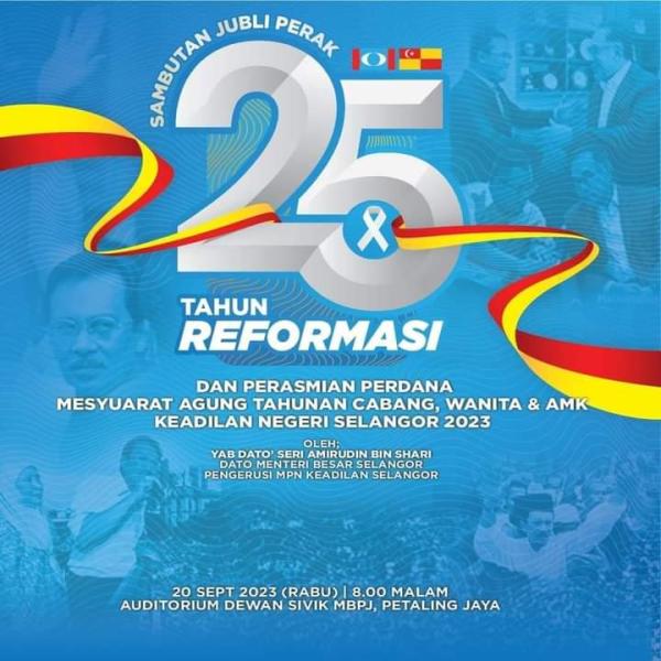 SHAH ALAM, 20 SEPT: Parti Keadilan Rakyat (KEADILAN) Selangor meraikan sambutan Jubli Perak hari ini sempena 25 tahun melaksanakan agenda reformasi dalam negara.