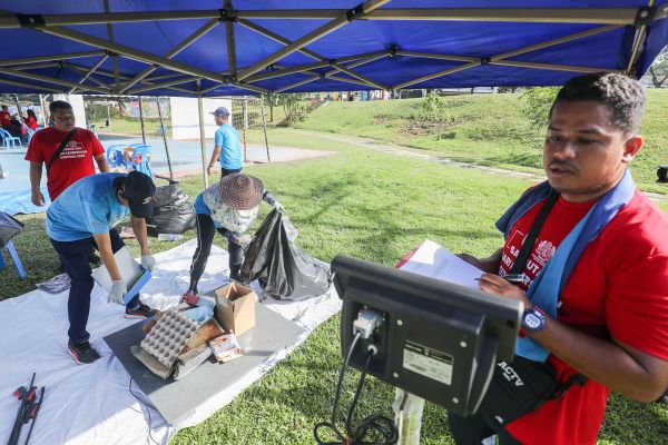 Peserta menimbang berat barangan yang boleh dikitar semula selepas pembersihan sekitar kawasan perumahan dalam program gotong-royong Perdana sempena sambutan Hari Pembersihan Sedunia peringkat MPAJ di Taman Bukit Indah Fasa 2, Ampang Jaya pada 23 September 2023. Foto FIKRI YUSOF/SELANGORKINI