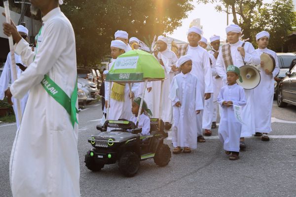 Peserta kanak-kanak turut berarak sempena sambutan Maulidur Rasul anjuran Kolej Teknikal Asmida dan Masjid Jamek Kampung Nakhoda di Batu Caves, Gombak pada 28 September 2023. Foto REMY ARIFIN/SELANGORKINI