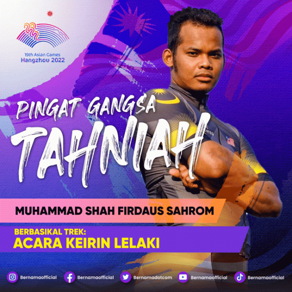 HANGZHOU, 29 SEPT: Jaguh berbasikal trek negara Muhammad Shah Firdaus Sahrom mempamerkan aksi menarik untuk meraih pingat gangsa acara keirin lelaki Sukan Asia Hangzhou 2022 di Velodrom Chun’an Jieshou malam ini.