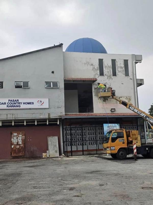 Kerja menaiktaraf pasar Bandar Country Homes, Rawang. Foto ihsan Ahli Dewan Negeri (ADN) Rawang Chua Wei Kiat[/caption]