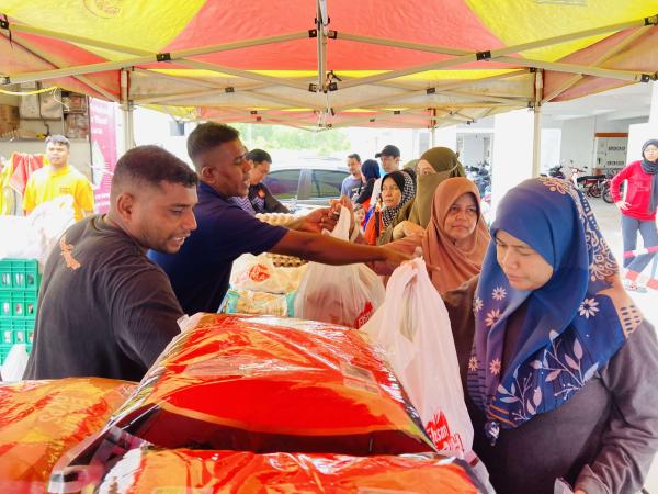 “Di sini kita sediakan 500 ekor ayam, beras lima kg (400 kampit), telur (300 papan), minyak masak lima kg (72 botol), ikan (200 pek) dan daging pejal 1kg (200 pek).