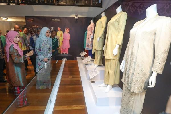 Tengku Permaisuri Hajah Norashikin turut berkenan melawat ruang pameran busana yang menempatkan 60 jenis busana termasuk sepersalinan kebaya milik Baginda kurniaan Raja Permaisuri Agong.