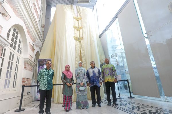 Duli Yang Maha Mulia (DYMM) Tengku Permaisuri Selangor Tengku Norashikin berkenan bergambar dihadapan Kebaya Perlis Gergasi selepas merasmikan Pameran Rahsia Kebaya anjuran Jabatan Muzium Malaysia (JMM) di Muzium Tekstil Negara, Kuala Lumpur pada 25 Oktober 2023. Foto REMY ARIFIN