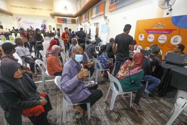 Orang ramai beratur dihadapan kaunter Yayasan Warisan Anak Selangor (YAWAS) sempena Hari Perihatin Rakyat anjuran Parlimen Gombak di Dewan Beringin, Taman Sri Gombak, Gombak pada 29 Oktober 2023. Foto REMY ARIFIN/SELANGORKINI