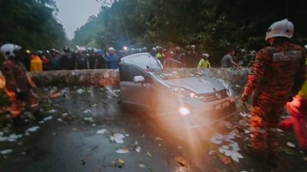 "Setibanya di lokasi, anggota melaporkan sebatang pokok tenusu kuning kira-kira 12 meter menghempap kenderaan pelbagai guna jenis Perodua Alza.