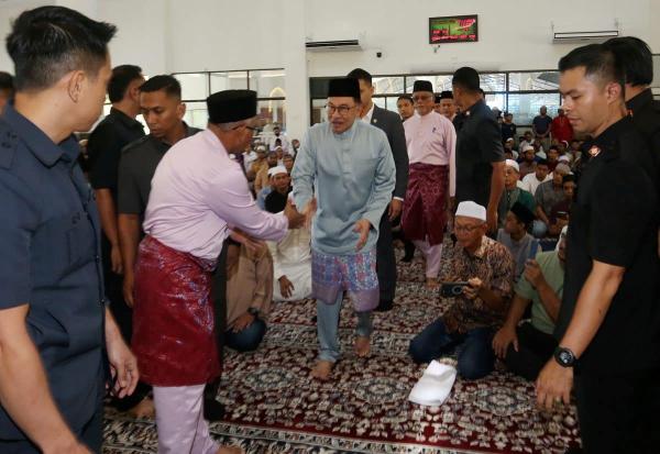 Anwar yang berbaju Melayu biru muda kemudian bersalaman dengan jemaah sebelum beredar meninggalkan masjid jam 2 petang.