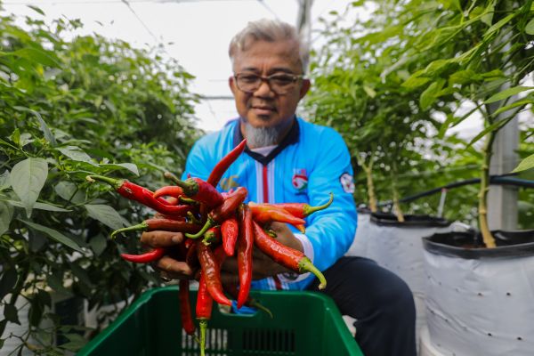 Penerima manfaat Inisiatif Pendapatan Rakyat (IPR) dalam Program Usahawan Tani (INTAN) Mohd Nordin Abdul Rahim, 55 menunjukkan hasil cili yang telah dipetik ketika tinjauan Media Selangor di Kobuniti Agro Park, Shah Alam pada 4 November 2023. Kerajaan memperuntukkan RM100 juta bagi tahun ini untuk pelaksanaan projek INTAN-IPR bagi meningkatkan keberkesanan pembasmian kemiskinan dan menambah pendapatan rakyat selain meningkatkan kemampanan bekalan makanan serta membantu usaha mengawal harga makanan di pasaran. Foto HAFIZ OTHMAN/SELANGORKINI