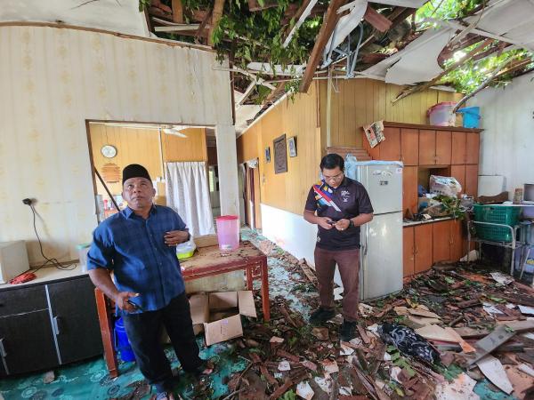 Safri bersyukur ketika kejadian isteri dan ibunya tiada di rumah, namun sedih kediaman berusia lebih 30 tahun itu rosak teruk pada bahagian bumbung.