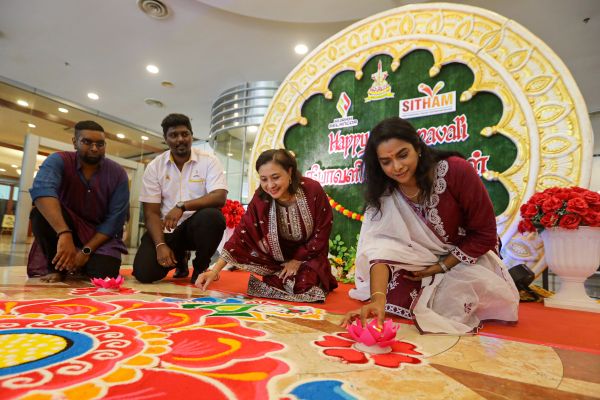 Ketua Pegawai Eksekutif Yayasan Hijrah Selangor Dato Mearia Hamzah (dua, kanan) bersama kakitangan Yayasan Hijrah Selangor menyalakan lilin dan menabur beras pada kolam ketika Majlis perasmian kolam Deepavali 2023 di Bangunan Sultan Salahuddin Abdul Aziz Shah, Shah Alam pada 8 November 2023. Foto HAFIZ OTHMAN/SELANGORKINI