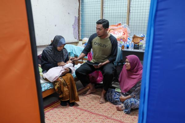 KUALA TERENGGANU, 21 NOV: Demi keselesaan dan keselamatan seluruh ahli keluarga, suami isteri yang baru menyambut kelahiran bayi lelaki mereka memutuskan untuk berpindah ke pusat pemindahan sementara (PPS) di Sekolah Kebangsaan (SK) Chendering di sini.
