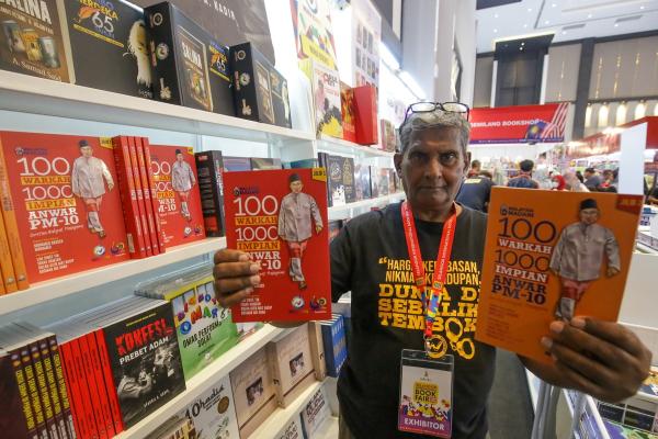 SHAH ALAM, 2 DIS: Buku 100 Warkah 1,000 Impian Anwar PM-10 terbitan Nuha Books menjadi rebutan pengunjung Pesta Buku Antarabangsa Selangor (SIBF) 2023.