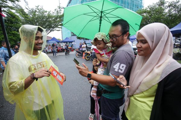 Pengunjung mengimbas kod QR Platform Selangor (PLATS) untuk menebus RM5 yang diberi percuma pada pengunjung ketika program Plats masuk pasar di Pasar Malam Setia Taipan, Shah Alam pada 7 Disember 2023. Foto FIKRI YUSOF/SELANGORKINI