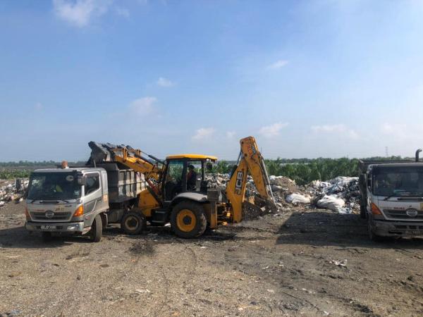 Jabatan Bomba Dan Penyelamat Kuala Selangor menggunakan teknik gali dan siram pada operasi pembersihan tapak pembuangan sampah haram di Jalan Kapar, Batu 14, Kapar pada 18 Mei 2023. Foto Facebook Majlis Perbandaran Klang[/caption]