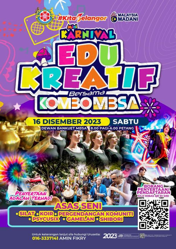 SHAH ALAM, 12 DIS: Majlis Bandaraya Shah Alam (MBSA) menganjurkan Karnival Edu Kreatif MBSA 2023 dengan pelbagai aktiviti menarik pada 16 Disember ini.