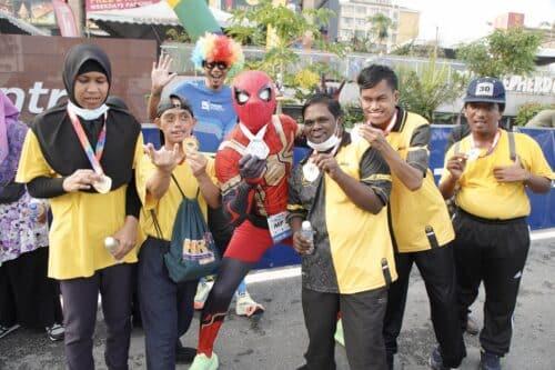 Peserta oku bergambar bersama peserta larian yang memakai kostum adiwira ketika menyertai Footer Klang City Quater Marathon 2023 sempena Hari Klang Tanpa Kenderaan di Centro Mall, Klang pada 17 Disember 2023. Foto NUR ADIBAH AHMAD IZAM/SELANGORKINI
