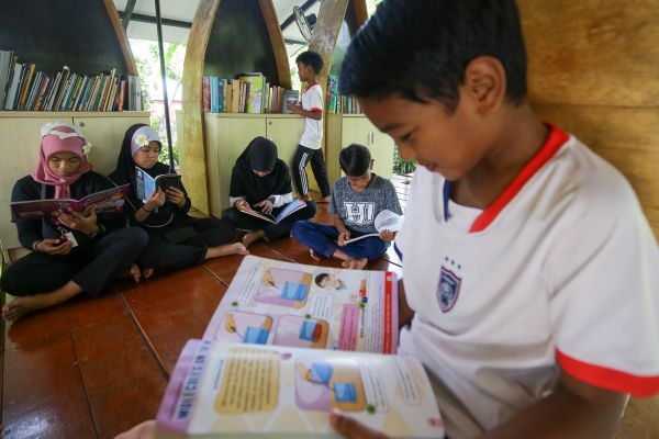 Kanak-kanak membaca buku di perpustakaan mini yang terdapat di Kebun Komuniti AU2 Keramat, Ampang Jaya pada 18 Disember 2023. Foto FIKRI YUSOF/SELANGORKINI