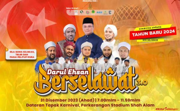 SHAH ALAM, 31 DIS: Orang ramai dijemput menghadiri Majlis Darul Ehsan Berselawat di Dataran Karnival, pekarangan Stadium Shah Alam hari ini bermula jam 2 petang.