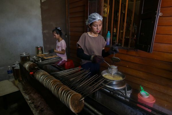 Pekerja sedang membakar kuih kapit tradisional ketika lawatan Anjung Utara di Ah Ma House, Sabak Bernam pada 10 Januari 2024. Kuih kapit resepi turun temurun tersebut hanya menggunakan santan pekat, gula, tepung dan telur ditambah keistimewaannya apabila membakar menggunakan dapur arang. Foto FIKRI YUSOF/SELANGORKINI