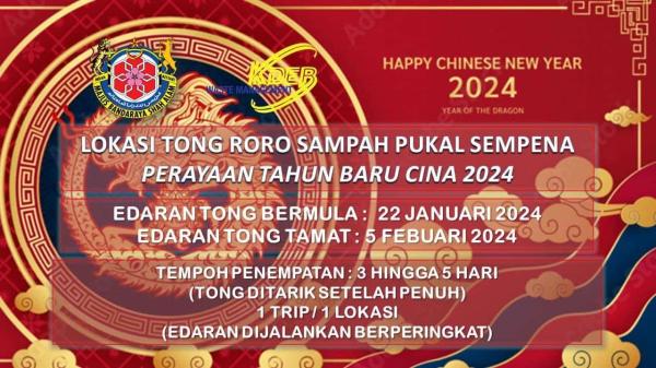 “Semua 384 lokasi tong Roro sempena perayaan Tahun Baru Cina ini akan ditempatkan KDEB Waste Management antara tiga hingga lima hari dan ditarik sekiranya penuh,” maklum MBSA.
