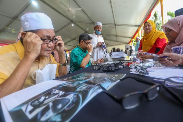 Penduduk memilih cermin mata di program pemberian cermin mata percuma Yayasan Mesra Selangor ketika Hari Prihatin Rakyat Parlimen Gombak: Karnival Keusahawanan dan Kebudayaan di Dewan Orang Ramai Kampung Melayu Wira Damai, Gombak pada 28 Januari 2024. Foto FIKRI YUSOF/SELANGORKINI