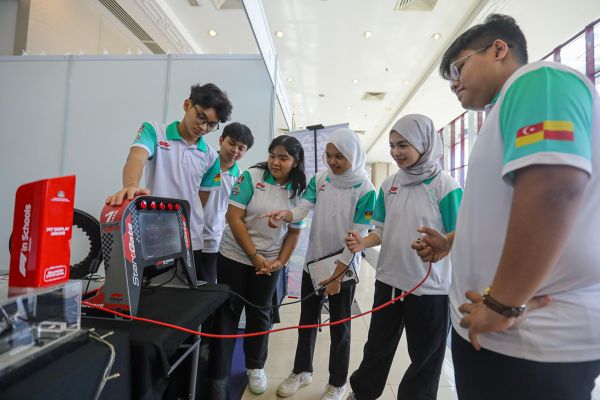 Pelajar Sekolah Menengah Kebangsaan Seksyen 9 Shah Alam menunjukkan demostrasi reaksi masa (time reaction) selepas Majlis perasmian Program Tekad Pendidikan #KitaSelangor: Karnival Eksplorasi STEM Negeri Selangor 2023/2024 di Pusat Konvensyen Shah Alam (SACC) pada 29 Januari 2024. Foto HAFIZ OTHMAN/SELANGORKINI