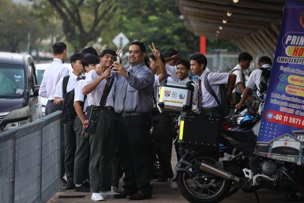 Calon Sijil Pelajaran Malaysia (SPM) bersalaman dengan bapa ketika tinjauan di Sekolah Menengah Kebangsaan (SMK) Seksyen 7, Shah Alam pada 30 Januari 2024. Foto REMY ARIFIN/SELANGORKINI[/caption]