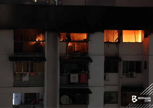 KUALA LUMPUR, 12 FEB: Sebanyak lima unit kediaman di Tingkat 17, Blok 70, Flat Sri Sabah, Cheras, musnah dalam kebakaran malam tadi.