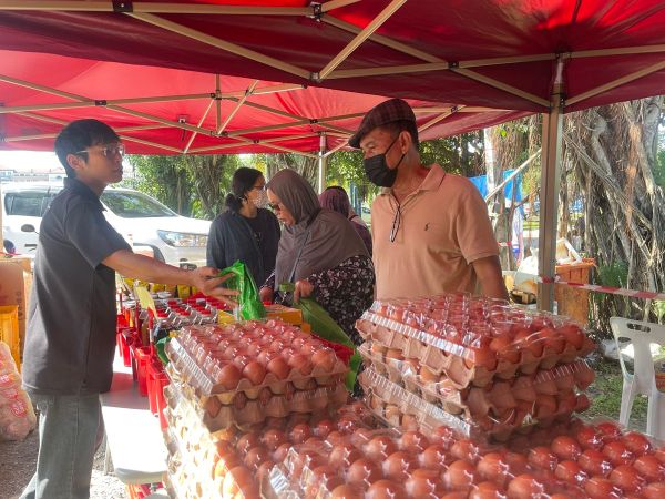 Selain ayam, jualan itu turut menawarkan produk seperti daging pejal segar (RM10 per pek), telur gred B (RM10 sepapan), minyak masak lima kilogram (RM25) dan beras lima kilogram (RM13).
