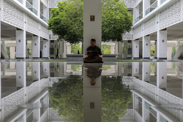 Seorang lelaki sedang membaca Al Quran di Masjid Raja Haji Fisabilillah Cyberjaya, Sepang pada 15 Februari 2024. Rekabentuk unik dan gaya senibina kontemporari mesra alam Masjid Raja Haji Fisabilillah menjadi daya tarikan pelancongan. Foto HAFIZ OTHMAN/SELANGORKINI