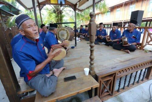 Kumpulan Kompang Perpaduan Pekan Parit Baru membuat persembahan ketika majlis kenduri rakyat sempena Ziarah Kasih Pekawanis bersama Tengku Permaisuri Selangor ke Anjung Utara Selangor di Rumah Gubuk Antik, Sungai Air Tawar, Sabak Bernam pada 22 Februari 2024. Foto AHMAD ZAKKI JILAN/SELANGORKINI