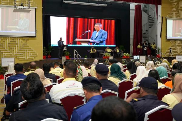 Timbalan Datuk Bandar Klang Mohd Zary Affendi Mohd Arif menyampaikan amanat kepada warga Majlis Bandaraya Diraja Klang (MBDK) pada Perhimpunan Bulanan Bersama Warga MBDK di Dewan Hamzah, Klang pada 18 Mac 2024. Foto Facebook Majlis Bandaraya Diraja Klang[/caption]