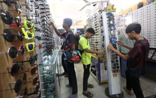Pengunjung memilih cermin mata ketika mengunjungi Uptown Mines, Seri Kembangan pada 29 Mac 2024. Pelbagai jenis cermin mata boleh didapati dengan harga dari RM15 sehingga RM200. Foto AHMAD ZAKKI JILAN/SELANGORKINI