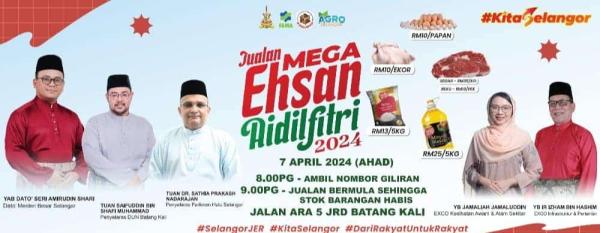 Sebelum ini EXCO Pertanian Ir Izham Hashim berkata program Jualan Mega Ehsan Aidilfitri yang bermula Rabu lalu hingga esok dijangka memanfaatkan 250,000 isi rumah.