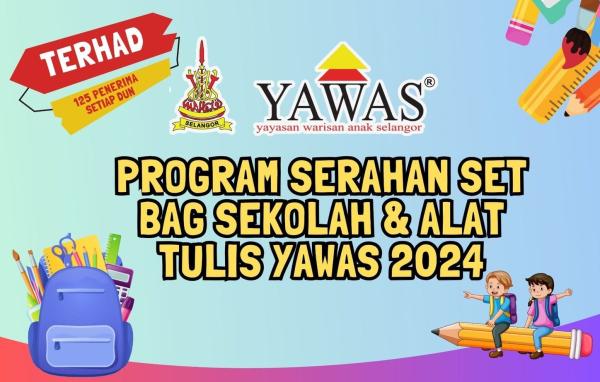 SHAH ALAM, 9 APRIL: Yayasan Warisan Anak Selangor (Yawas) membuka permohonan bantuan set beg sekolah dan alat tulis 2024 bermula 15 April hingga 3 Mei.