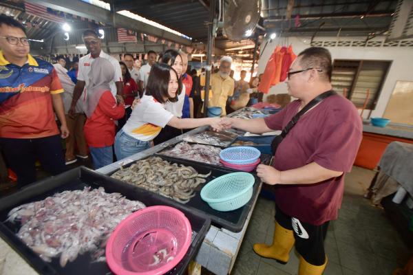 HULU SELANGOR, 30 APRIL: Calon Kerajaan Perpaduan memulakan kempen Pilihan Raya Kecil (PRK) Dewan Undangan Negeri (DUN) Kuala Kubu Baharu (KKB) pagi ini dengan bertemu penduduk di Pasar Awam Kuala Kubu Bharu, di sini.