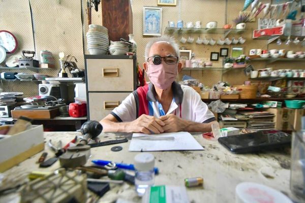 Tan Hock Yew, 71, ketika ditemui di kedainya di Jalan Dato Muda Jaafar Kuala Kubu Baharu. Hampir 50 tahun, Tan Hock Yew, menjadikan kemahirannya membaiki pelbagai jenis jam tangan dan dinding bukan setakat sebagai sumber pendapatannya tetapi sebagai khidmat untuk berbakti kepada masyarakat setempat di Kuala Kubu Baharu pada 30 April 2024. Foto MOHD KHAIRUL HELMY MOHD DIN/SELANGORKINI