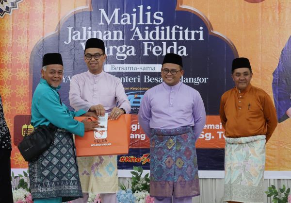 Dato' Menteri Besar Dato' Seri Amirudin Shari berucap pada majlis Jalinan Aidilfitri Warga Felda di Dewan Semai Bakti Felda Sungai Tengi, Hulu Selangor pada 4 Mei 2024. Foto AHMAD ZAKKI JILAN/SELANGORKINI[/caption]