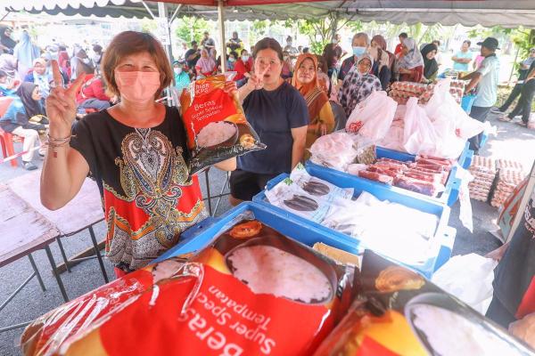Pengunjung mendapatkan barangan asas ketika Jualan Ehsan Rahmah (JER) di Surau Nur Hidayah, Taman Rasa Utama, Hulu Selangor pada 7 Mei 2024. Foto REMY ARIFIN/SELANGORKINI