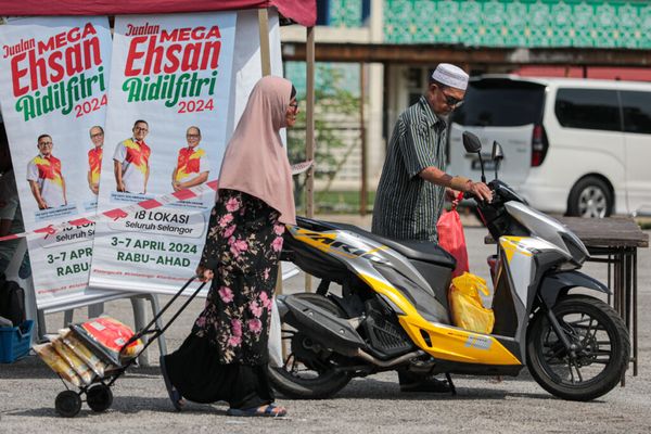 Orang ramai membeli barangan keperluan asas pada program Jualan Ehsan Rahmah DUN Kuala Kubu Baharu di Masjid Al-Falah, Ulu Yam Bharu, Hulu Selangor pada 8 Mei 2024. Foto HAFIZ OTHMAN/SELANGORKINI