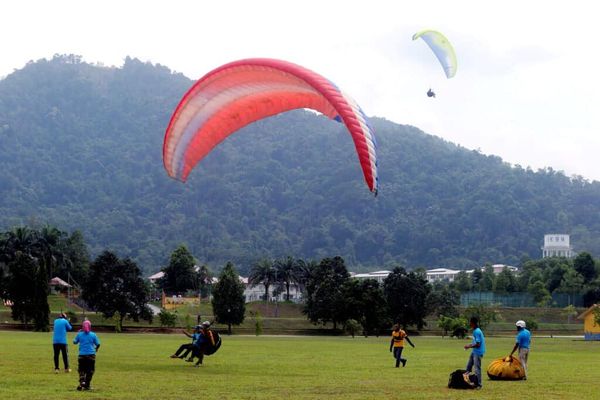 Pemain luncur udara melakukan aktiviti luncur udara (paragliding) di Tapak Sukan Udara, Bukit Batu Pahat, Kuala Kubu Bharu pada 8 Mei 2024. Foto MOHD KHAIRUL HELMY MOHD DIN/SELANGORKINI