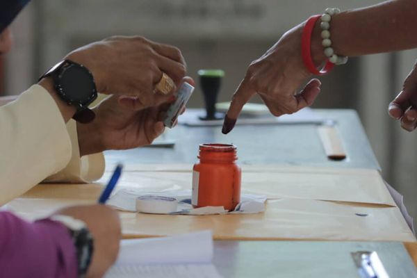 Pengundi mencelup jari ke dalam dakwat kekal untuk menunaikan tanggungjawab mengundi pada Pilihan Raya Kecil (PRK) Dewan Undangan Negeri (DUN) Kuala Kubu Baharu di pusat mengundi Sekolah Rendah Jenis Kebangsaan (C) Khing Ming, Kuala Kubu Bharu, Hulu Selangor pada 11 Mei 2024. Foto HAFIZ OTHMAN/SELANGORKINI di pusat mengundi Sekolah Rendah Jenis Kebangsaan (C) Khing Ming, Kuala Kubu Bharu, Hulu Selangor pada 11 Mei 2024. Foto HAFIZ OTHMAN/SELANGORKINI