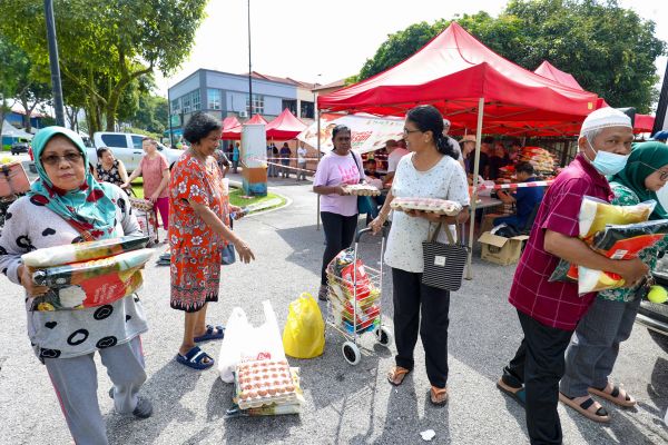 Orang ramai membeli barangan keperluan asas yang dijual murah berbanding harga pasaran ketika program Jualan Ehsan Rahmah DUN Pandan Indah di Dataran Pandan Prima, Ampang Jaya pada 14 Mei 2024. Foto FIKRI YUSOF/SELANGORKINI