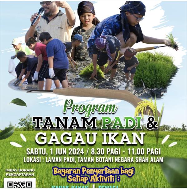 SHAH ALAM, 19 MEI: Orang ramai dipelawa merasai pengalaman menanam padi dan menggagau ikan di Taman Botani Negara Shah Alam (TBNSA) pada 1 Jun depan.