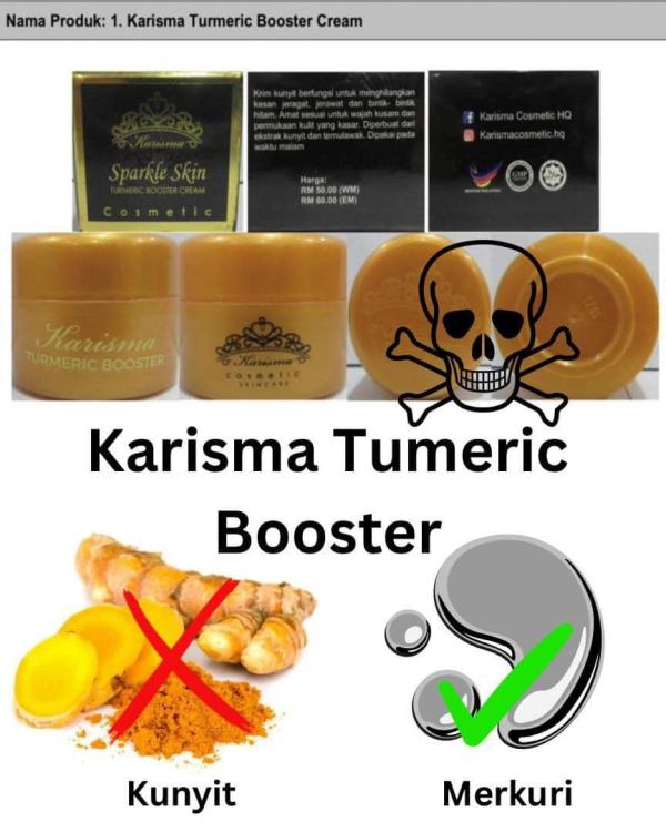 Ketua Pengarah Kesihatan Datuk Dr Muhammad Radzi Abu Hassan dalam kenyataan hari ini berkata produk berkenaan ialah N Glowing EWSB yang dikesan mengandungi merkuri; Karisma Golden Turmeric Cream (merkuri dan betamethasone 17-Valerate); dan SL Two Intensive yang dikesan mengandungi hidrokuinon dan Betamethasone 17-Valerate.