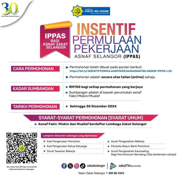 Agensi zakat negeri memaklumkan program bawah Insentif Permulaan Pekerjaan Asnaf Selangor (IPPAS) itu menyedia sumbangan RM700 kepada penerima berkelayakan.